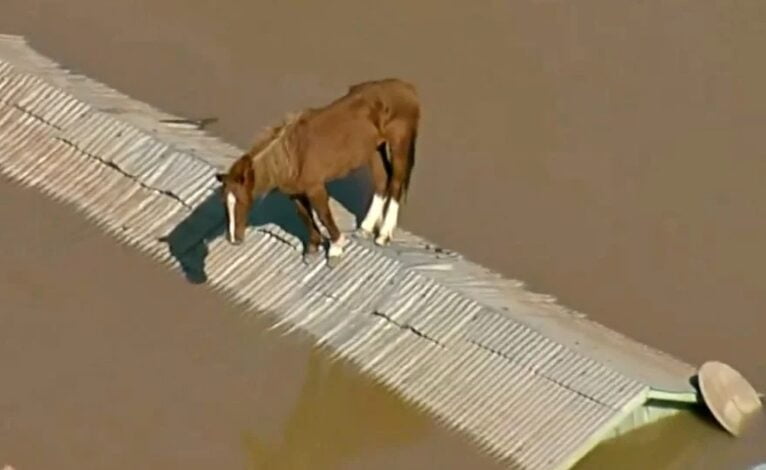 Exército mobiliza veterinários para resgatar cavalo, em Canoas