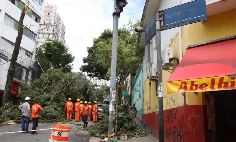 Chuva e ventos fortes causam queda de árvores e alagamentos em São Paulo; uma pessoa morreu eletrocutada