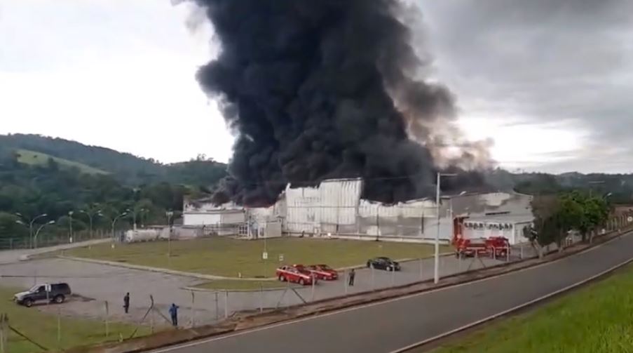 Fabrica de Polímeros da Mitsubishi pega fogo em Atibaia.