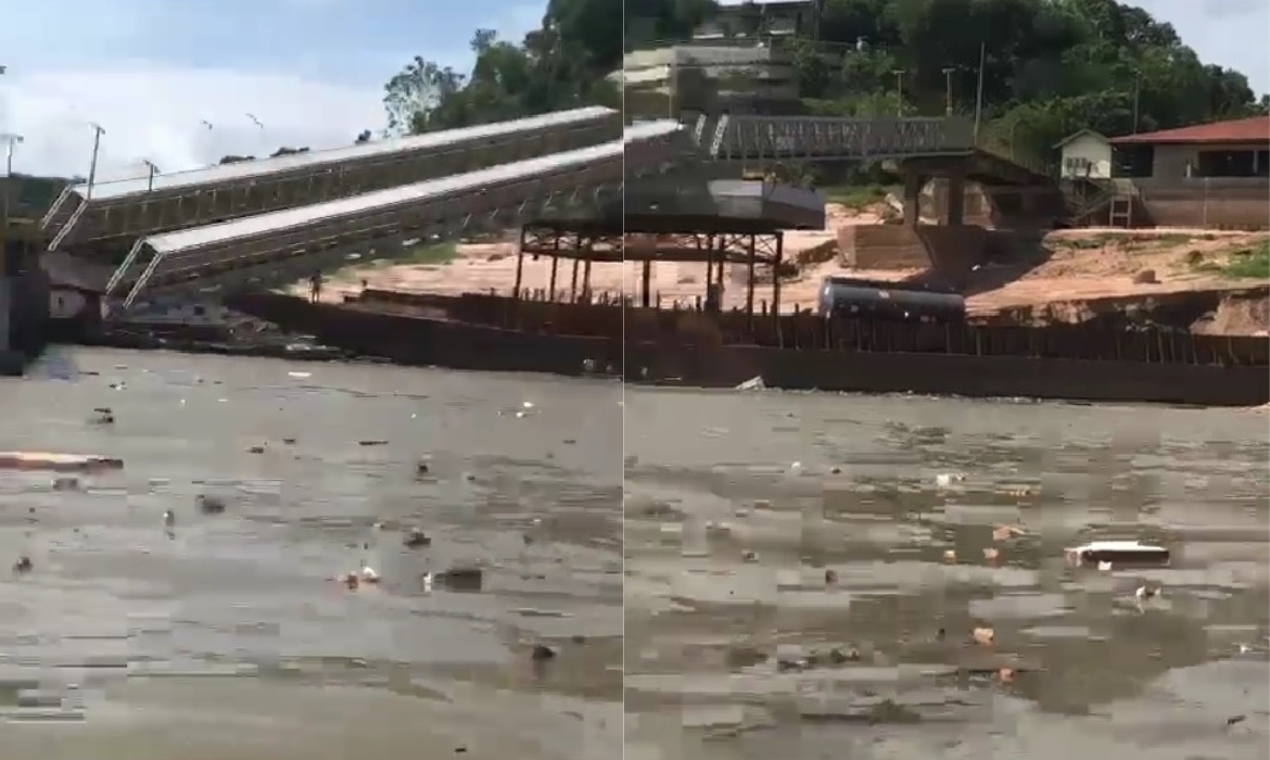 Vídeo: Porto desaba e deixa 7 pessoas feridas e uma criança desaparecida no Amazonas