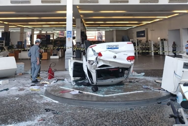 Um acidente em uma concessionária da Volskwagen no centro de São Paulo deixou três pessoas feridas na manhã desta segunda-feira (27). De acordo com o Corpo de Bombeiros, um automóvel caiu do andar superior da concessionária atingindo a recepção onde estavam duas pessoas.
