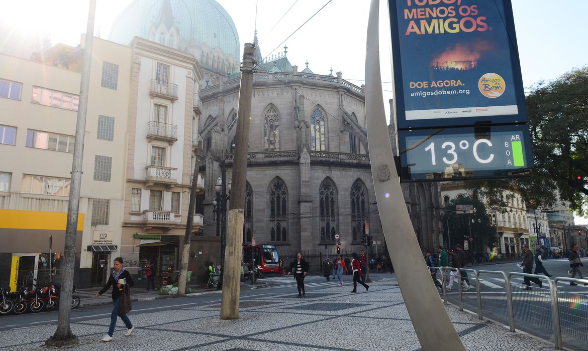 São Paulo – Manhã na capital marca 13° nos termômetros em frente a Catedral da Sé, região central.(Rovena Rosa/Agência Brasil)