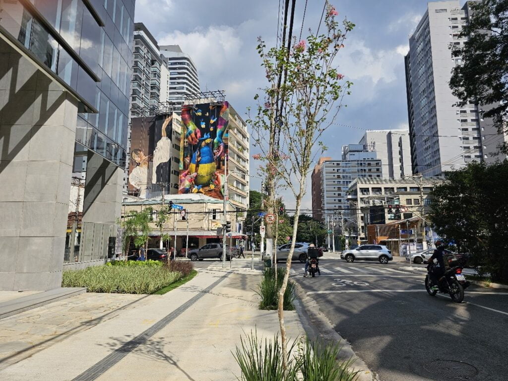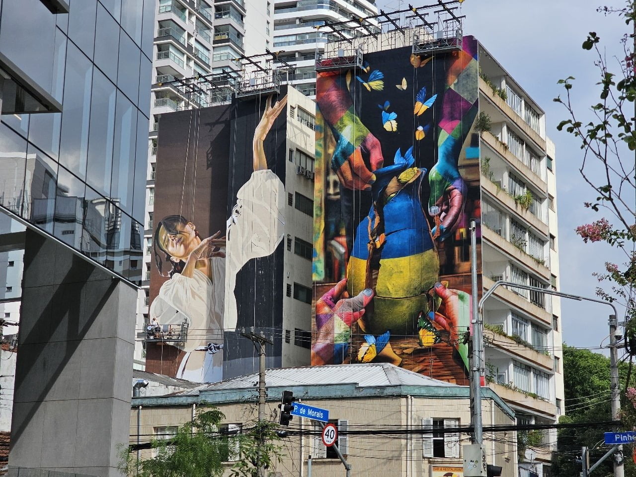 Os artistas brasileiro e ucraniano se juntaram para pintar um prédio de nove andares em Pinheiros, com o apoio do Instituto Ucraniano, em uma obra que simboliza a resiliência, a união e a esperança do povo ucraniano