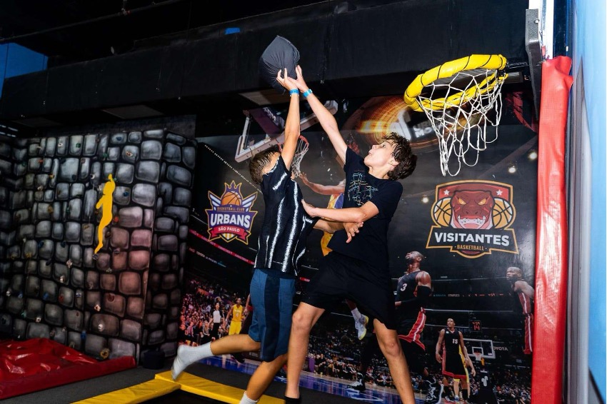 O parque se destaca por suas diversas atrações, como trampolins, piscina de espuma, percurso ninja e uma parede de escalada, todas pensadas para estimular o corpo e a mente.