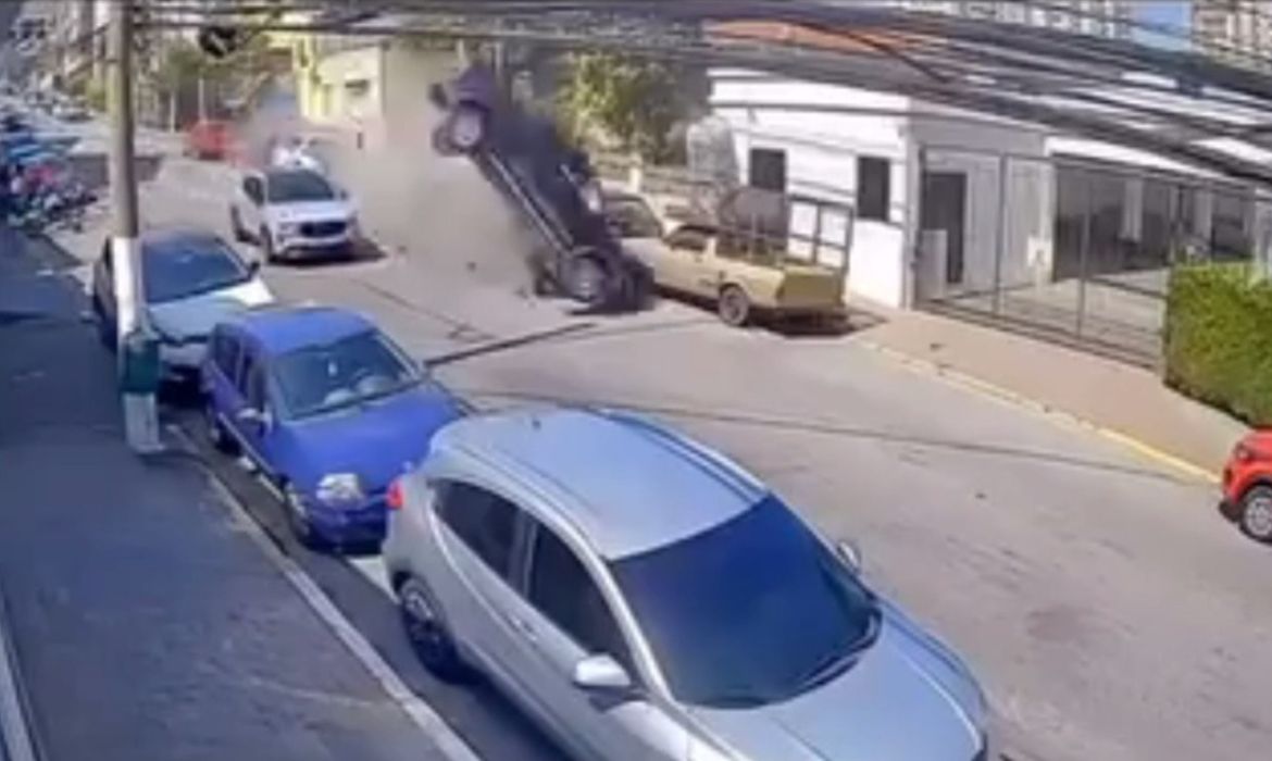 Vídeo: Caminhonete capota e atinge 10 veículos na Vila Guilherme, Zona Norte de SP