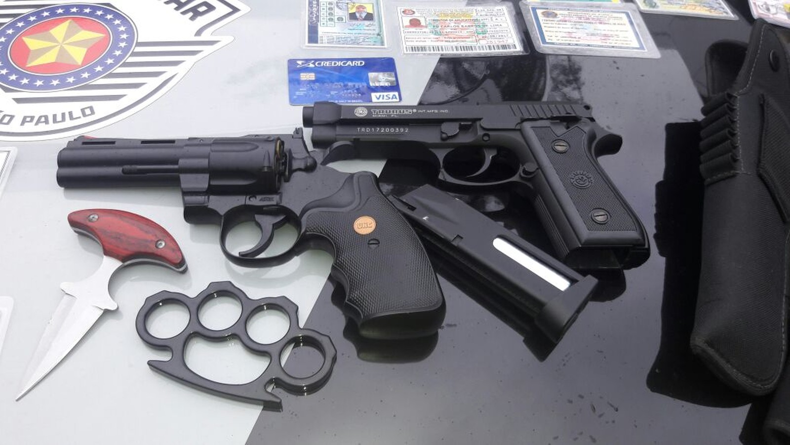 Homem é preso com duas réplicas de armas e documentos falsos da polícia em SP