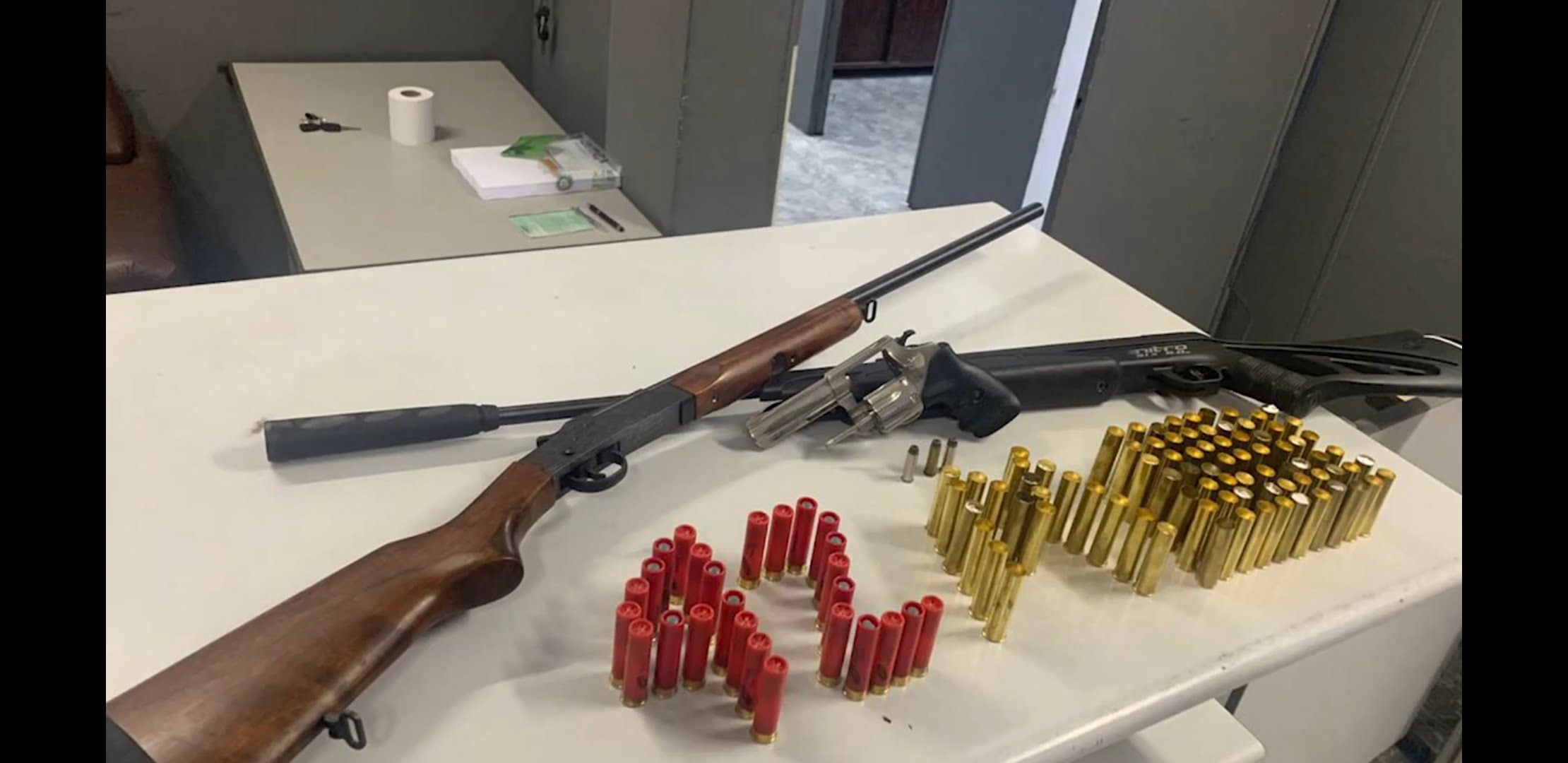 O veículo foi interceptado e, durante revista, os militares encontraram um revólver calibre 38 com um dos ocupantes e duas armas longas escondidas na caçamba, que seriam de propriedade do  tirador esportivo.