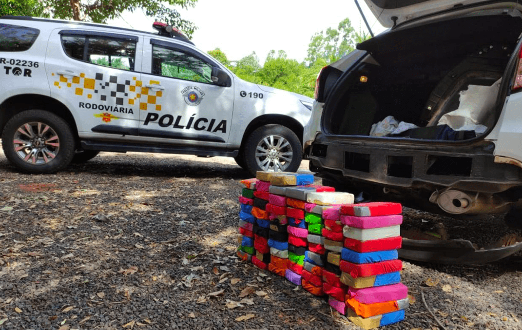 Durante a abordagem, os policiais encontraram o compartimento falso no para-choque do veículo. Dentro dele, os PMs localizaram 71 tabletes de cocaína. O motorista foi preso em flagrante e levado para a Delegacia.