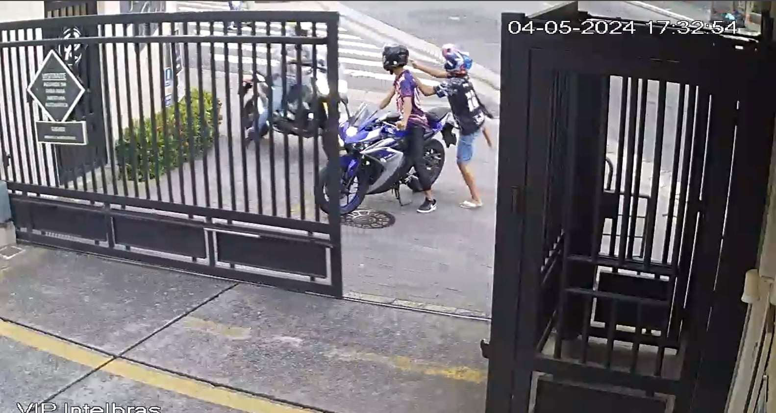 Em uma ação rápida, um motociclista demonstrou reflexo e habilidade ao escapar de uma tentativa de assalto bem na porta de seu condomínio no final da tarde de sábado (4), no bairro de Santana. O crime, foi registrado por câmeras de monitoramento, e ocorreu quando a vítima foi abordada por dois indivíduos em outra moto. O garupa, armado, desceu e anunciou o assalto. No entanto, a vítima, com uma manobra rápida, conseguiu se desvencilhar e fugir do local.