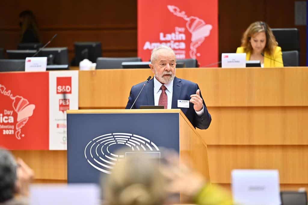 Líder nas pesquisas para as eleições de 2022, Lula participou no Parlamento Europeu de um evento organizado pela Aliança Progressista dos Socialistas e Democratas (S&D), grupo que reúne eurodeputados social-democratas e que controla a segunda maior bancada da Casa.