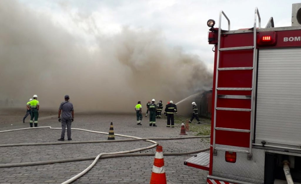 Bombeiros apagam incêndio no Porto de Santos