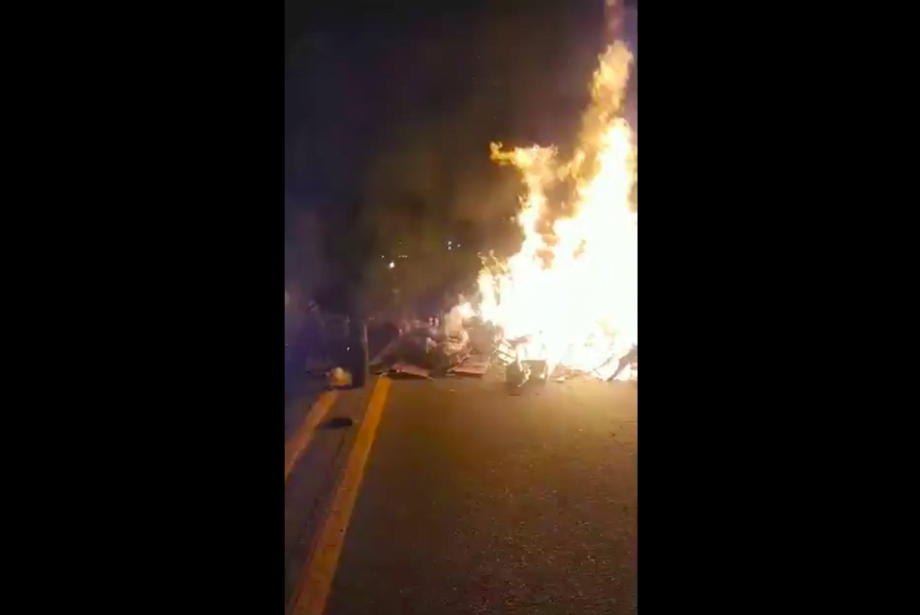 Manifestantes usaram pedaços de madeira para formar uma barricada no meio da rodovia. Eles chegaram a colocar fogo e foi preciso a intervenção da Polícia Rodoviária Estadual e do Corpo de Bombeiros.