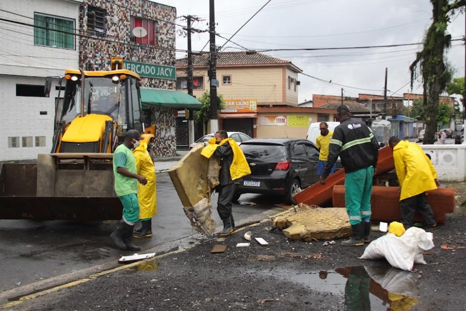 As fortes chuvas da madrugada causaram transtornos na Baixada Santista. Em Santos, um mutirão retirou 16 toneladas de lixo trazidos pelas enchentes nos bairros da zona noroeste. De acordo com a Defesa Civil do município, em 12 horas, choveu 72,7 milímetros. A força-tarefa usou sete caminhões e duas retroescavadeiras para retirar o entulho da região.