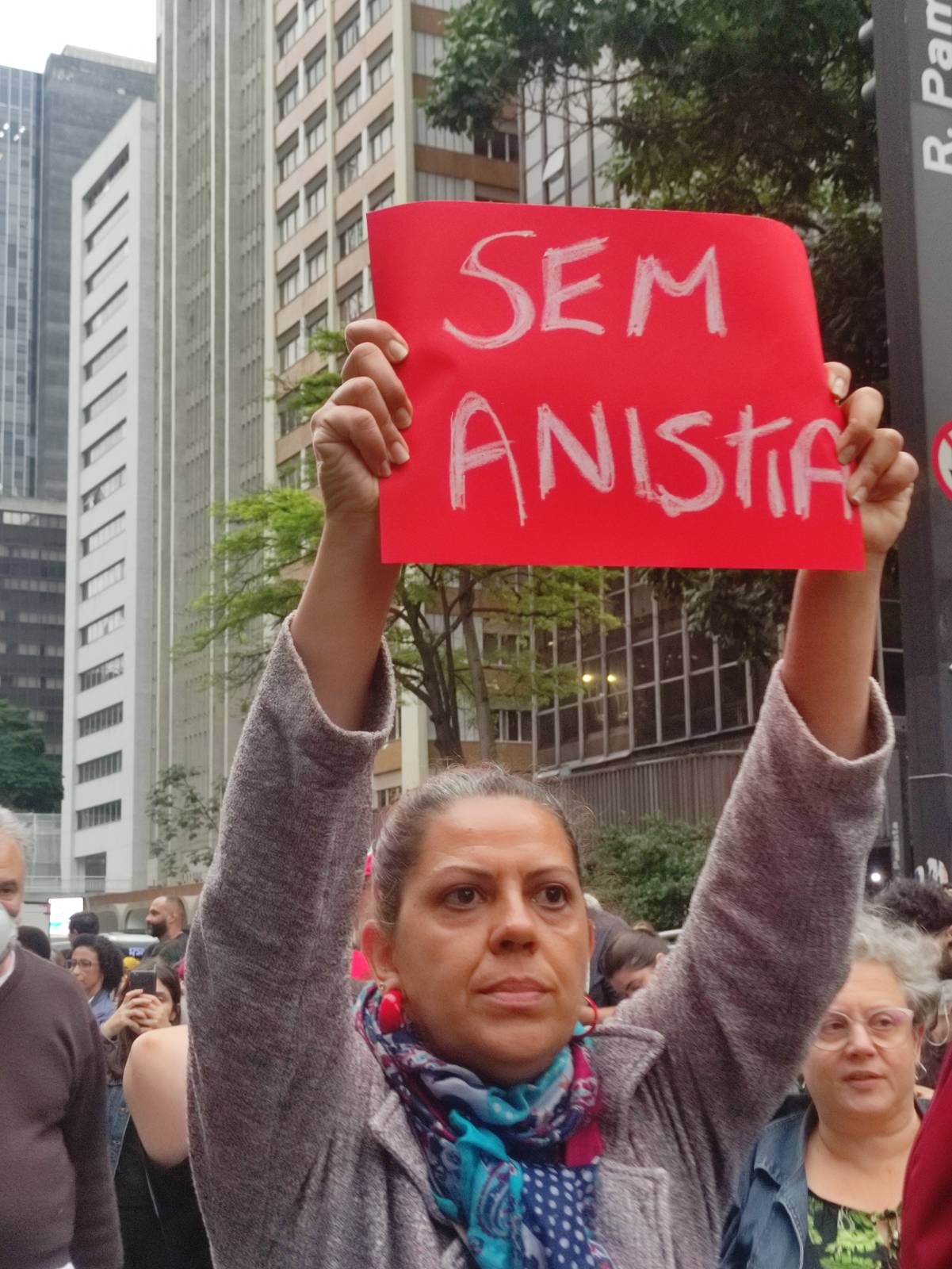 Protesto pacífico pede punição aos terroristas que invadiram Brasília
