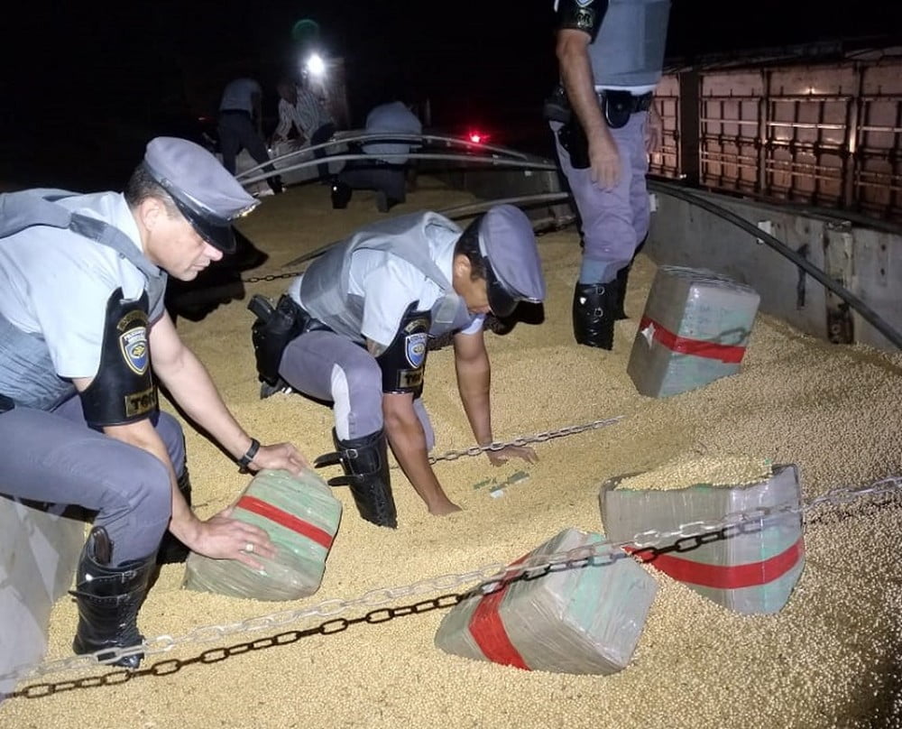 Os PMs encontraram 164 tabletes de cocaína pura, totalizando cerca de 160 quilos da droga.