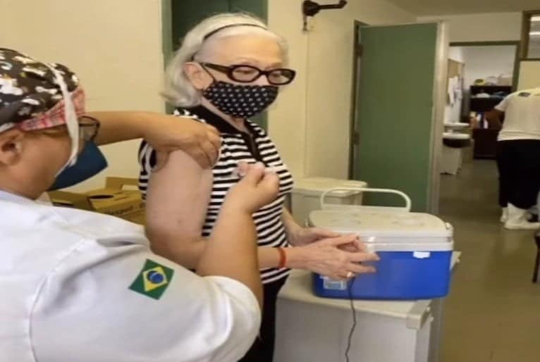 Atriz tem 91 anos e faz parte do grupo vacinado nesta etapa