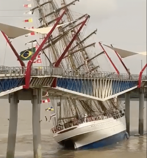Navio da Marinha brasileira bate em ponte no Equador